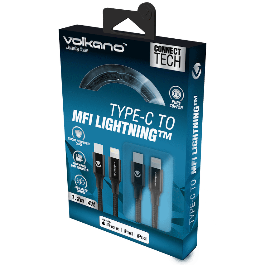 The Volkano Lightning Series Type-C to MFI Lightning Cable features an Apple chipset that is compatible and safe for your iphone and ipad devices. High speed charging and high speed data transfer capabilities give you a faster and more convenient tech experience whilst a 1.2m, strong and reinforced cable ensures durability. SPECIFICATIONS: – Apple Chipset: C94 – Charge Rate: Up to 3 A – Maximum Power: 30 Watts – Data Transfer Rate: 0.5 GBpsFEATURES AND BENEFITS: – 1.2 Meter / 4 Feet – Strong Reinforced Cable – High Speed Data Transfer – High Speed ChargeWhat’s in the box1 x 1.2 meter Type-C MFI Lightning Cable