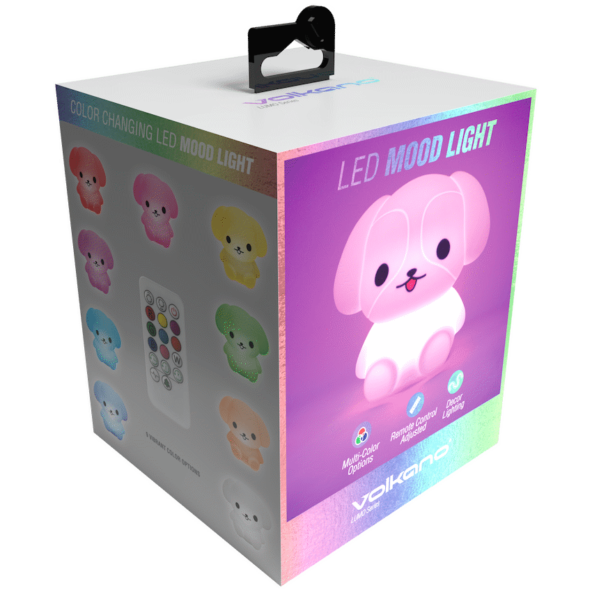 Puppy Night Light for Easy Bedtime Routines. This Cute Mood Light is Remote Controlled & RechargeableMood light for your child or babies room, this adorable Kitten Bedside Light not only adds cute decor into the mix, but also ensures the safety of your little ones if they need to fall asleep with some illumination in their room.Featuring a range of multi-colour options, The Volkano Lumo Series Night light effortlessly adapts to your mood or your child’s favourite colour, creating a personalized and enchanting atmosphere. With the convenience of a remote control, you can easily adjust the settings to suit any occasion, making it the perfect addition to your little ones nursery or bedroom.Crafted with the environment in mind, this night light is eco-friendly, promoting sustainability without compromising on style. The machine-washable silicone part ensures easy cleaning solutions, giving you peace of mind for your family’s well-being.Worried about power or load-shedding? Fear not! The Lumo Puppy Light comes equipped with a Micro USB charging input, providing a hassle-free charging experience. Say goodbye to disposable batteries and hello to a greener, more convenient lighting solution that your little one will love.Features & Benefits:- Decor Lighting for Kids & Babies- Safe for Babies and Toddlers- Multi-Color Options- Mood Lights- Remote Controlled- Eco Friendly- Micro USB Charging Input- Machine Washable Silicone PartSpecifications:- Material: Silicone, ABS- Usage: Power Outages, Night Light, Ambient Light- Battery capacity: 700 mAh- Product size: 93 x 93 x 115 mmWhat’s in the boxx1 Puppy Mood Light | Volkano Lumo Seriesx1 USB Charging Cablex1 Instruction Manual