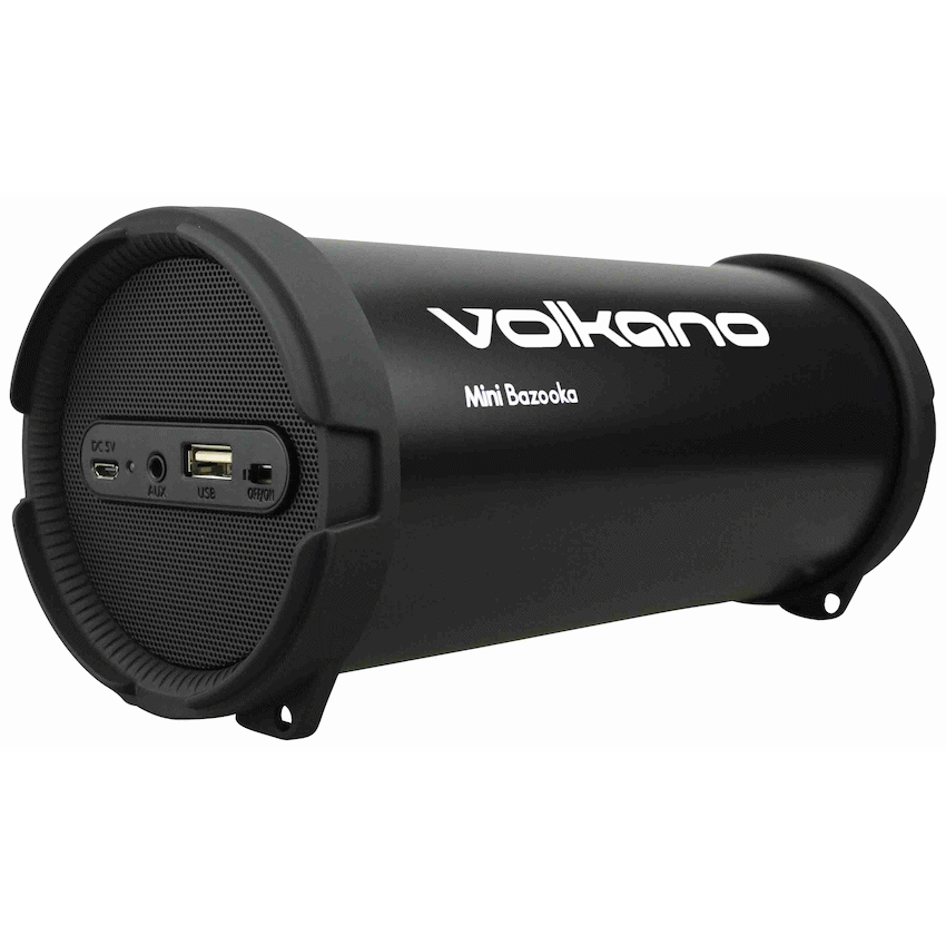 Undeniably stylish and unique, one of Volkano’s most popular Bluetooth Speaker now has its very own mini-me in the Mini Bazooka. Set the trend in your office or home.Simply pair your Bluetooth device, and start streaming your favorite tunes in an instant. The included USB port offer an alternative way to play music on different storage mediums. The included 3.5mm jack also gives you an additional way to connect your music. Tired of your own beats? Listen to your favorite radio station with the built-in FM Radio function.The 3-inch 10W subwoofer ensures superior clarity of those deep bass tones. Treble and mid-range sounds are backed up with two 1.5W 1.4-inch driver speakers. Big sound in a surprisingly small form factor.The Volkano Bazooka is designed for the ultimate in portability without sacrificing sound quality. The carrying handle makes light work of taking your music wherever you want to go. Enjoy your music at home, at your office, the outdoors, or even at that party with your friends.SPECIAL FEATURES:- USB Port- 3.5mm Jack- FM Radio Station – 3-inch 10W Subwoofer- Treble and Mid-Range Sounds- 1.5W 1.4 – Inch Driver Speakers- Portable – Playtime of 2 HoursSPECIFICATIONS:- Bluetooth Version: 2.1 Bluetooth- Range: 10 meters- Speakers: 2.5 inch, 7.5W- Battery: 1500mAh- Playtime: 2 hours- Connections: USB, Aux-in 3.5mm JackWhat’s in the box1 x Speaker