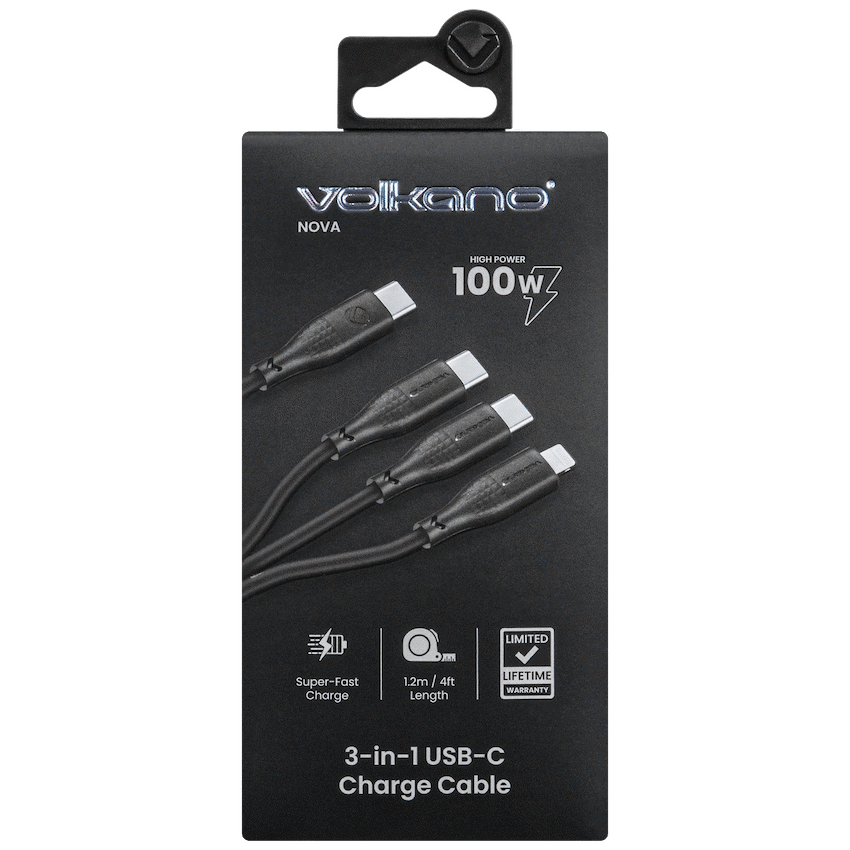 Volkano Nova Series USB C to 2 USB C and lightning cable 100W TPE-Black