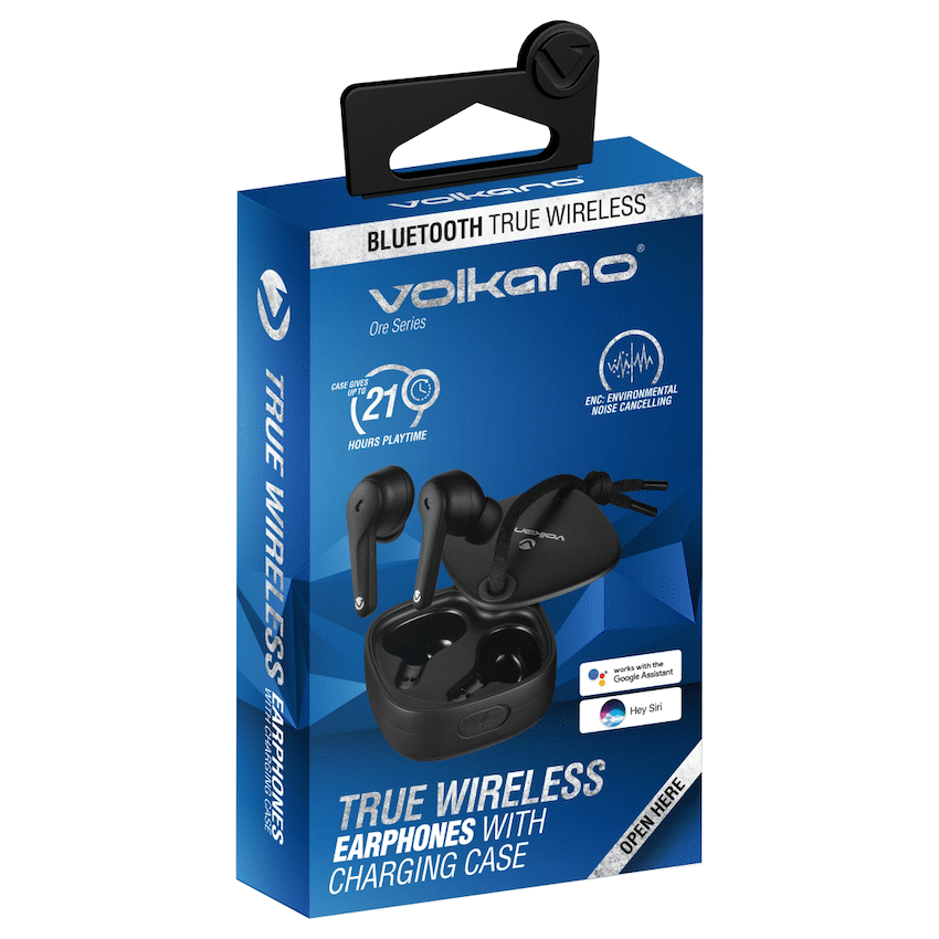 Volkano Ore Series True Wireless Earphones with Charging Case – Black