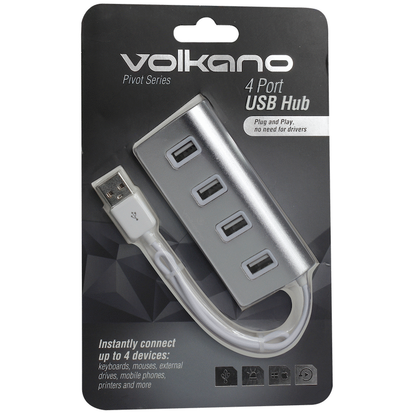 Features:- No power supply is required, as it is powered by USB- Compatible with Windows and Mac OS- Instantly connect up to 4 devices: keyboards, mouses, external drives, mobile phones, printers, and more- Up to 480 mbps transfer speeds- Individual port over-current protection- Are you running out of USB ports on your computer or laptop? Not with the Pivot Series USB hub- Now you have additional USB ports for all of those extra devicesWhat’s in the box1 x 4-Port USB Hub