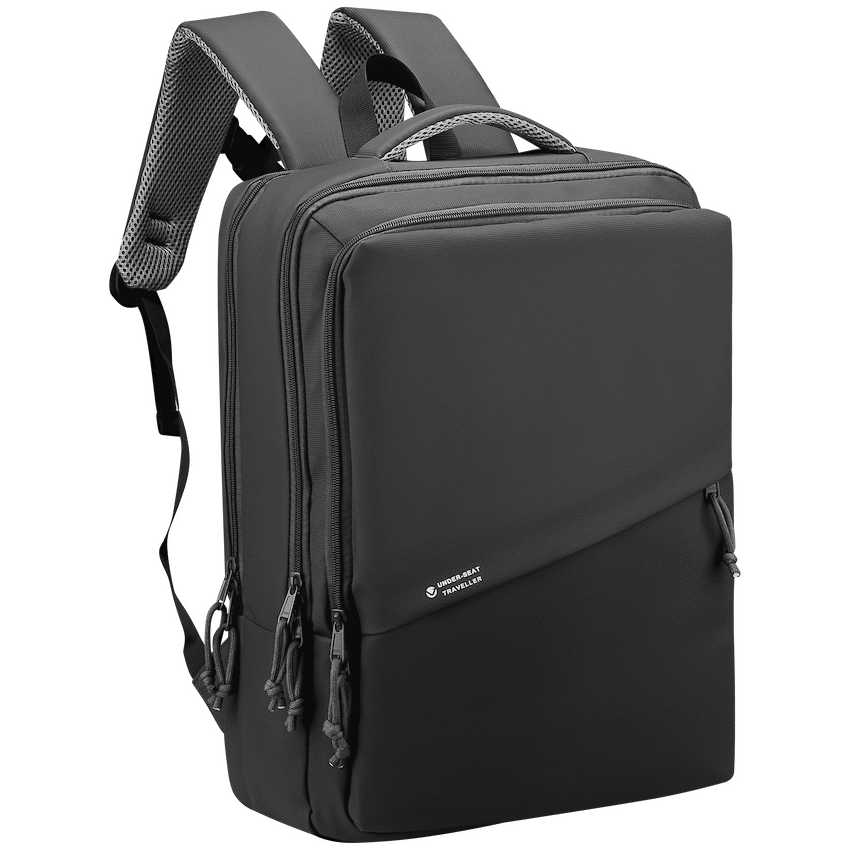 A high-quality laptop backpack with a padded compartment that fits laptops up to 15.6″, designed to accommodate all your business and overnight packing needs, whilst fitting neatly under the seat in front of you on an aeroplane. Multiple internal and external pockets provide ample storage for organizing chargers, cables, power banks, keys, wallets, water bottles, notebooks, documents, and other daily essentials. Made with durable, water-resistant materials and reinforced stitching for long-lasting use. Features adjustable padded shoulder straps, breathable back padding, a top handle for carrying, side handles for easy lift, and a secure zipper closure for added protection during travel or daily use.