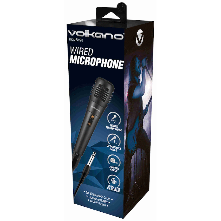 Take the stage with the Volkano Vocal Series Wired Karaoke Microphone. Designed for crystal-clear sound and ease of use, this microphone is the ideal choice for karaoke nights, live events, and casual performances. Its unidirectional design focuses on your voice while minimising background noise, giving you cleaner, sharper audio every time.With a wide frequency response of 80 Hz – 13 kHz and a sensitivity rating of -77 dB, you’ll enjoy reliable performance whether you’re speaking, singing, or recording. The lightweight ABS build ensures durability without weighing you down, while the 3m cable and 6.35mm jack provide flexible connectivity for mixers, speakers, or amplifiers.Whether you’re hosting a party, performing at an event, or just practicing your vocals, the Volkano Vocal Series microphone delivers quality sound at an affordable price.