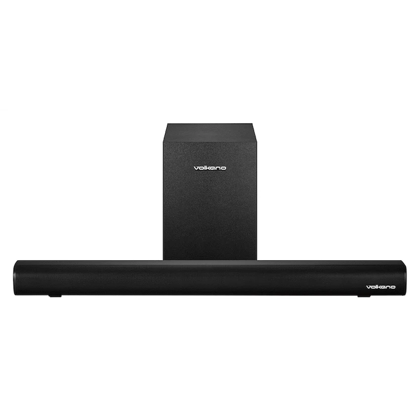 The Volkano Vortex Series is a cutting-edge speaker system designed to redefine your audio experience. With Bluetooth 5.0 connectivity and impressive sound quality driven by the Bluetrum AB5001A chipset, it offers a total RMS output of 70W RMS, including a 15W RMS soundbar with EQ modes and a 40W RMS subwoofer. This system also boasts convenient accessories, like an RCA to Aux cable and a remote control, while its wall-mounting capability and LED display add a touch of sophistication to your setup. Get ready to elevate your entertainment with immersive sound, flexible features, and modern technology.Accessories:RCA to Aux CablePower CableRemote Control