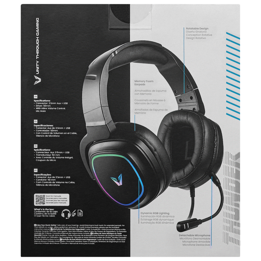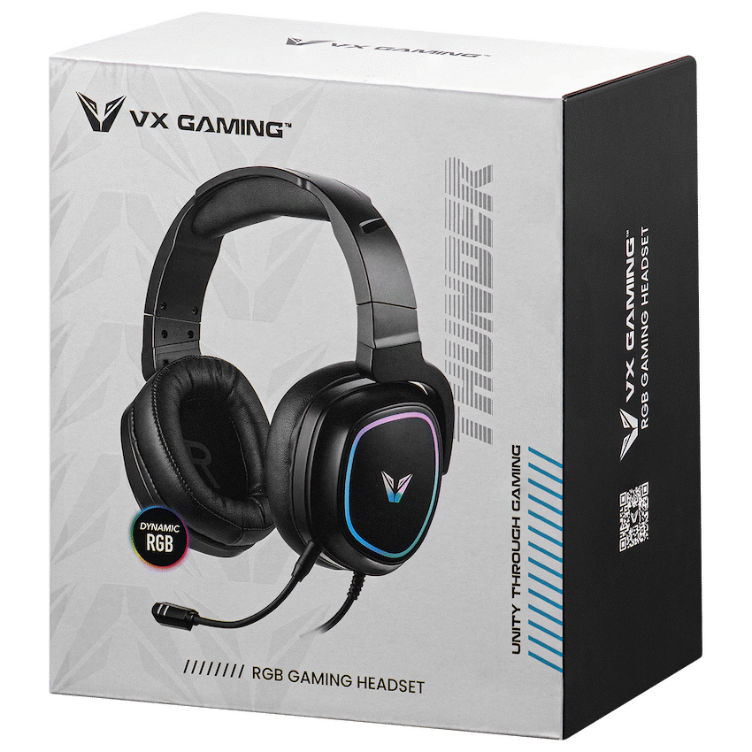 Bring your game to life with the VX Gaming Thunder Series RGB Headset. Designed for gamers who want more than just sound, this headset combines bold RGB lighting, rich stereo output, and comfort for marathon sessions. Whether you’re coordinating with teammates or exploring virtual worlds, the boom mic picks up your voice clearly, and inline controls let you instantly mute mic or adjust volume without breaking focus.With 50 mm drivers, soft memory foam ear pads, and a padded adjustable headband, the Thunder headset is built to keep you in the game for hours. The 3.5 mm audio jack makes it compatible with PC, consoles and mobile devices, while RGB lighting adds a visual edge via a USB connection. Plug in and play-no drivers needed.